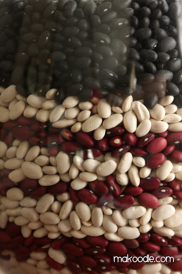 I used red kidney beans, northern beans, and black beans to create my display.