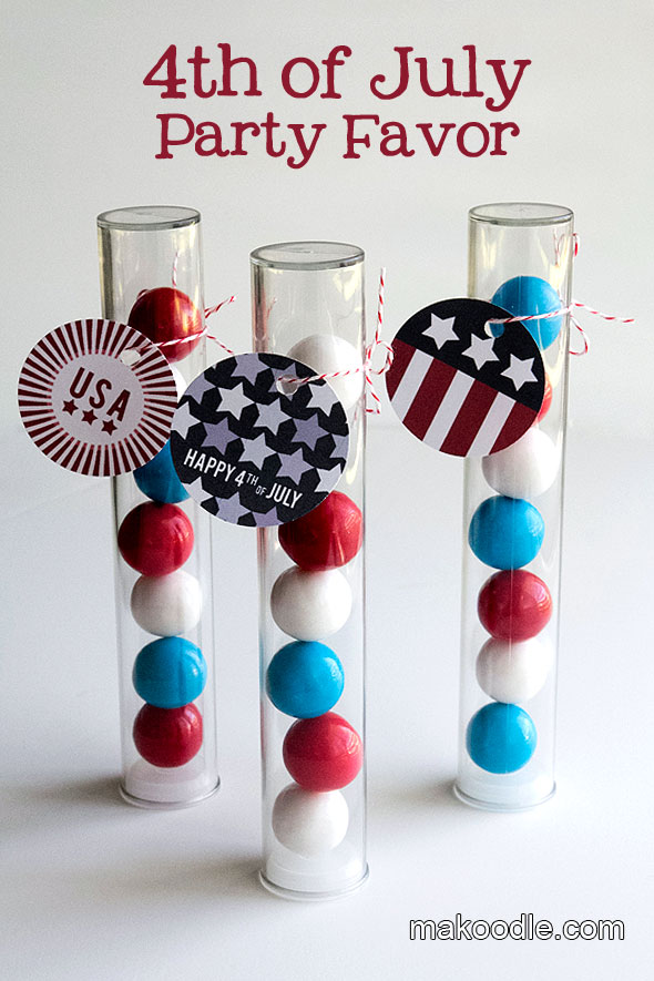 Come check out this cute 4th of July party favor made with red, white, and blue gumballs. Whoever thought of those gumball tubes is one smart cookie!
