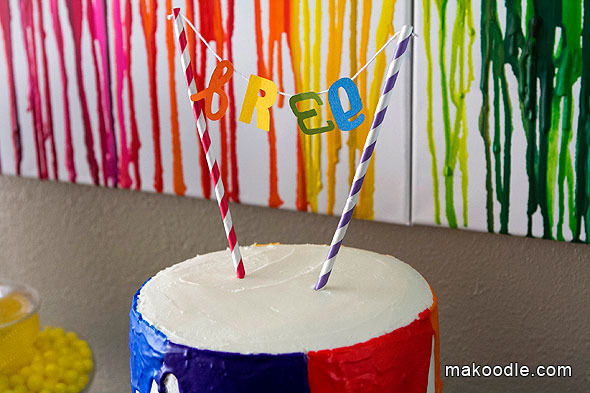 For the second cake, I made the glaze a bit thicker and drizzled the glaze in sections. This made the cake look like the melted crayon canvases.