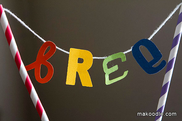 I used my Silhouette to cut out the letters and some cute paper straws to hold the banner up.