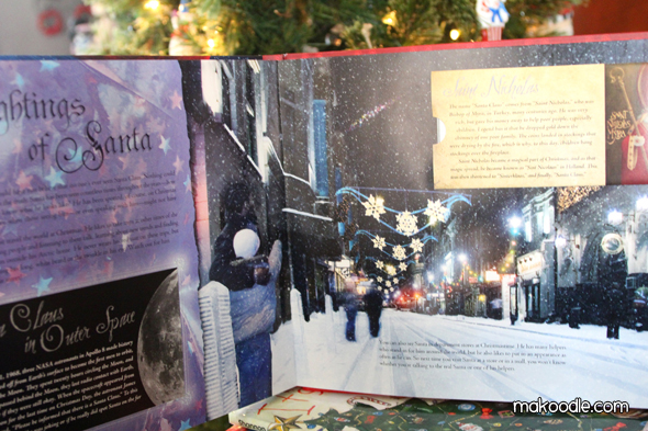 This one is my kids favorite Christmas book. They love looking through it. The pages are very cute and engaging. I included some pictures of the pages from the book below. There are letters to Santa, a Christmas wish list, a recipe for cookies for Santa, and more! It is fantastic. I highly recommend this book. It is magical!