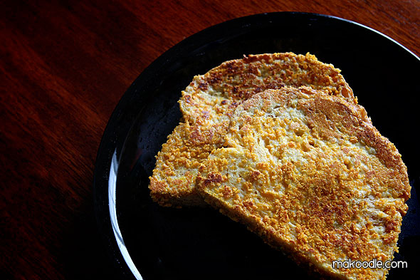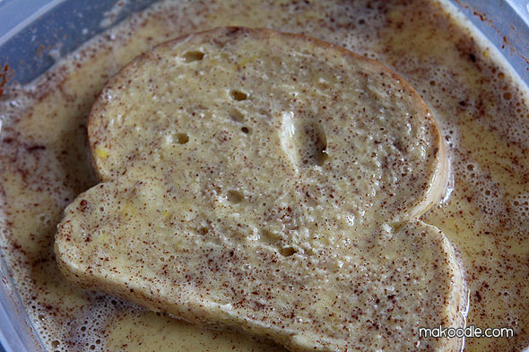 Coat each side of the bread with your egg batter. I am careful not to let the bread soak too long or it gets too gooey.