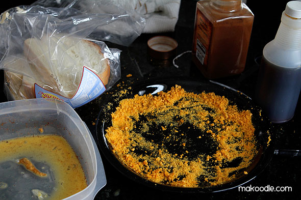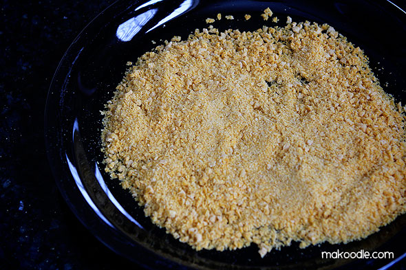 Put crushed Cap’n Crunch a plate.