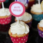 Oh how I love cupcakes. The only thing that makes cupcakes more lovable is when they coordinate with your birthday party theme. For Bree’s party, I designed some printable polka dot cupcake toppers to match the decor for the rest of the party. And lucky me – I picked up some polka dot cupcake liners…