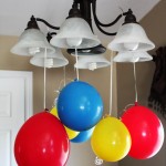 This has got to be the easiest and cheapest way to decorate for a birthday party or event. I like to get balloons that coordinate with the colors of my overall party theme and hang them from the chandalier that hangs over our dining table. I use three different colors with two balloons of each…
