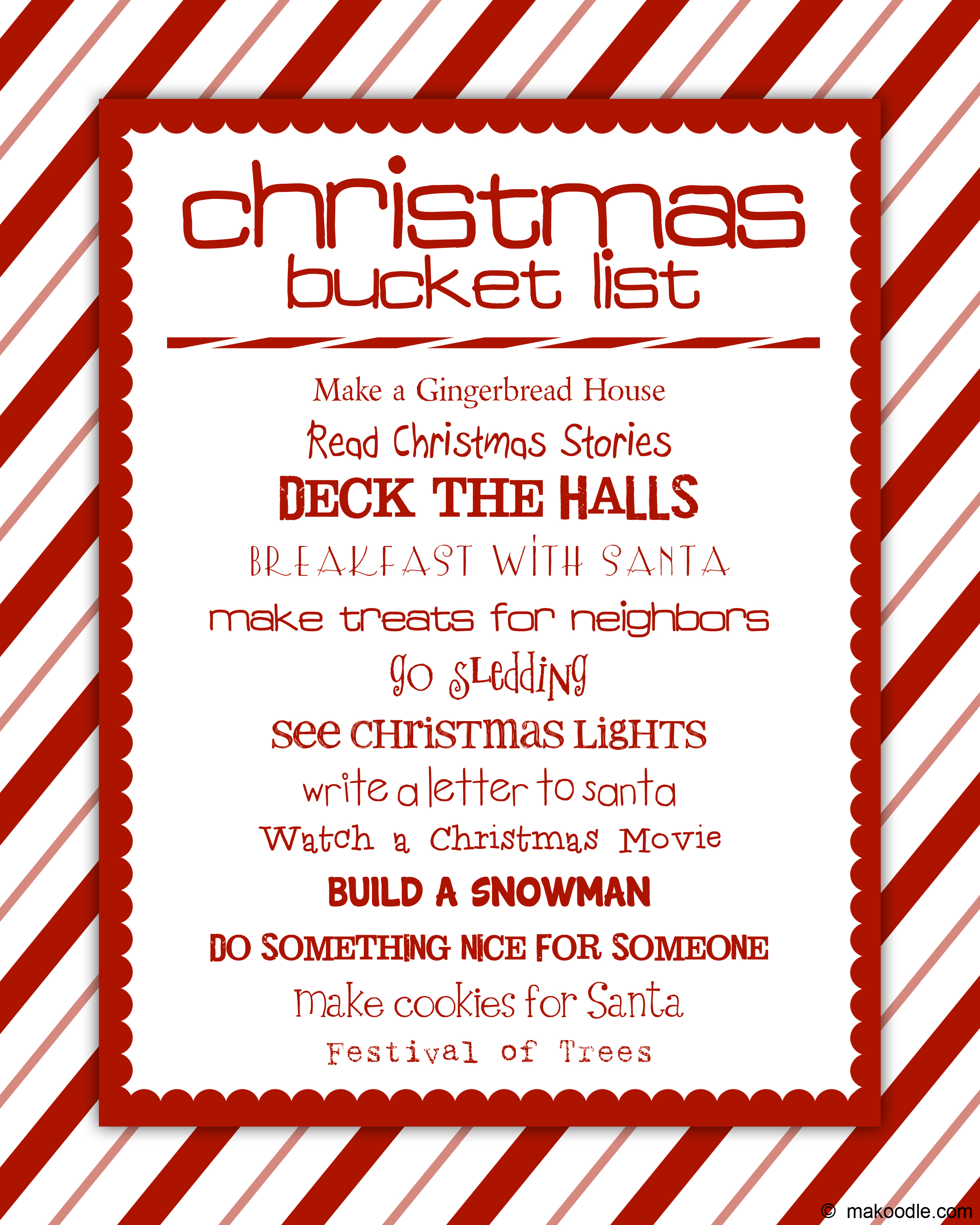 Free Printable Christmas Bucket List