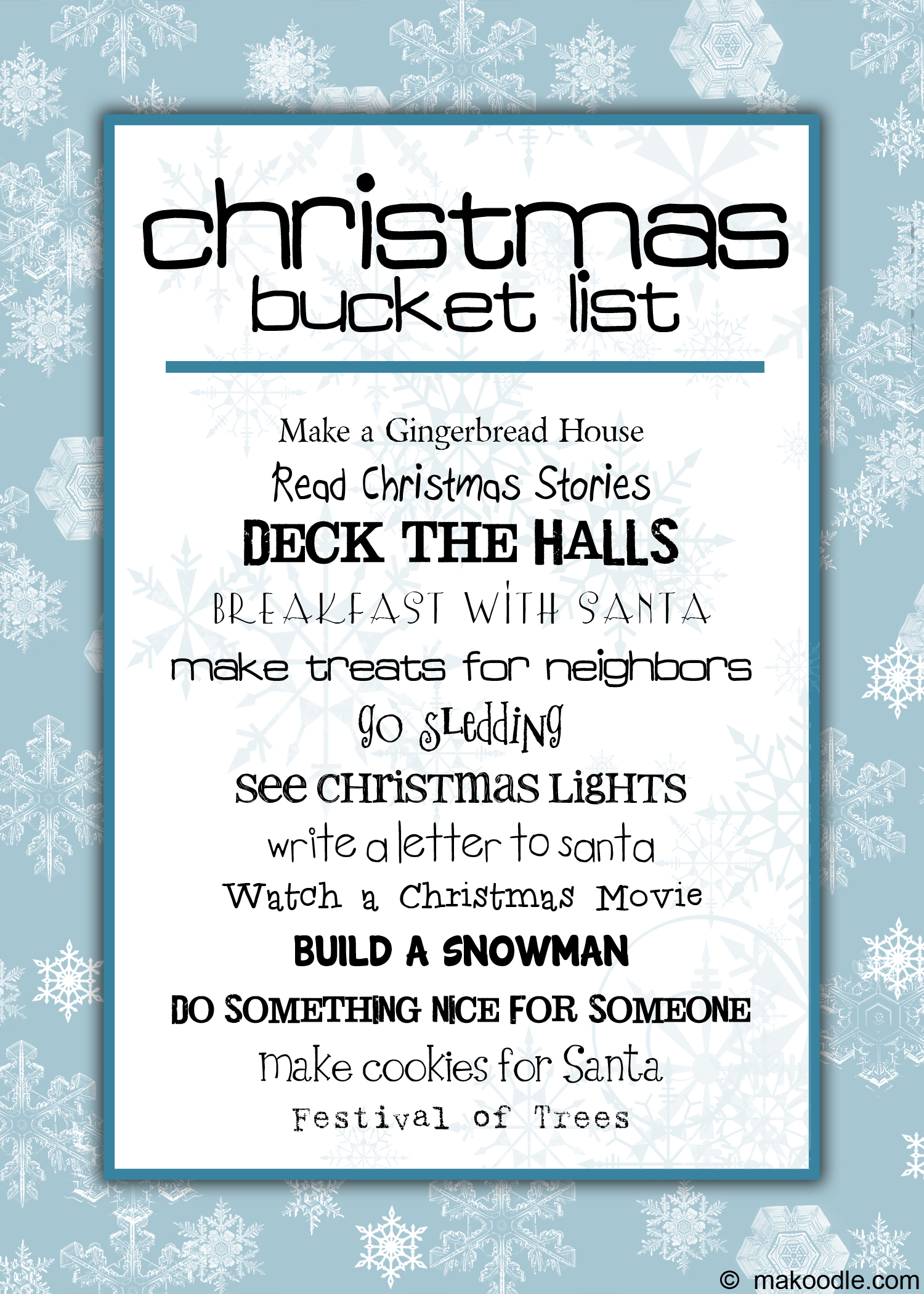Christmas Family Activities Bucket List – Snowflake Blue