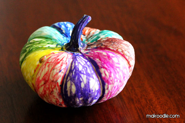 Cute… looks fun for kids. Love the rainbow sections. I’ve gotta find me some white pumpkins. And, markers. 🙂