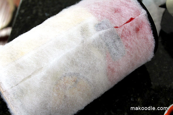 I made two headband holder – one for each daughter. I made one with the oatmeal and one without. The one without oatmeal is multipurpose with the inside being used as storage for elastic headbands.