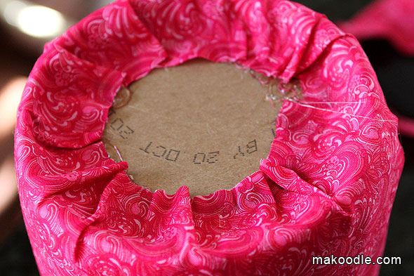 Glue the fabric flower to the top of the lip, then place the lid on top of the can.