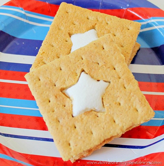 S’mores are one of my favorite summer treats. These star graham cracker punched s’mores are clever and perfect for a Fourth of July camp out.