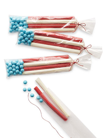 I love the simplicity of this patriotic party favor. I wish I knew where to find the red and white licorice.