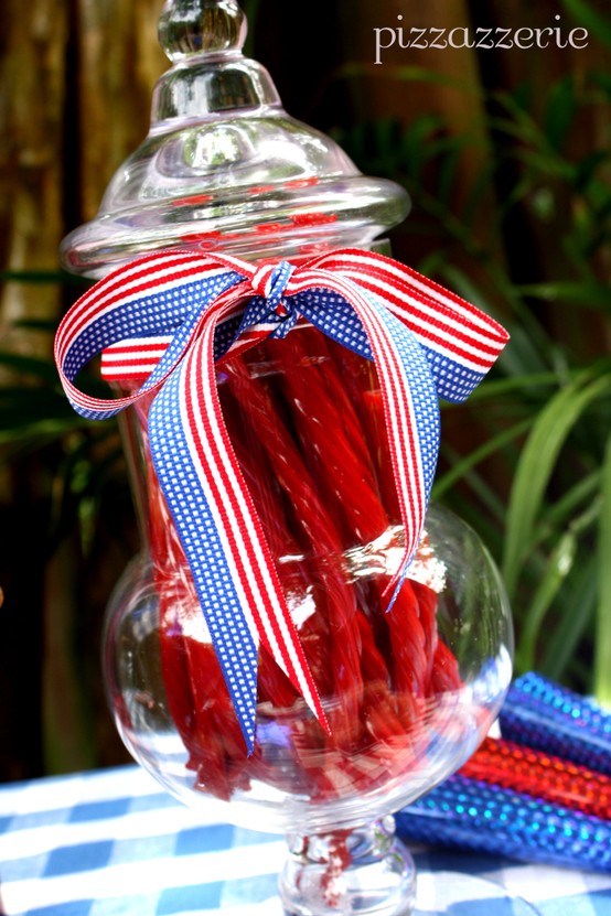 Use licorice as an easy Fourth of July treat for your party. Add a pretty apothecary jar and some ribbon and you have a cute decoration as well.