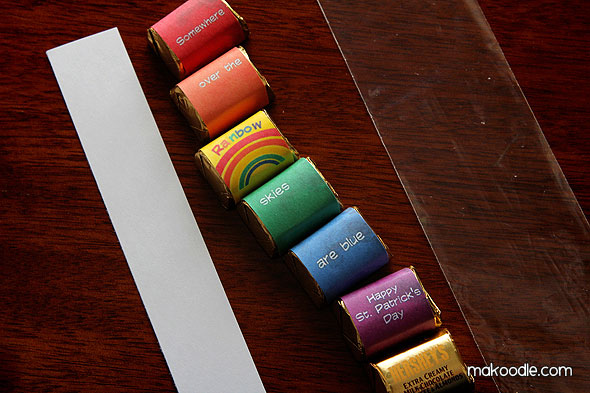 Print a set of rainbow wrappers for your Hershey nuggets.