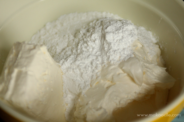 My frosting came out a tad bit lumpy. No worries, it will soon be covered by the strawberry topping.