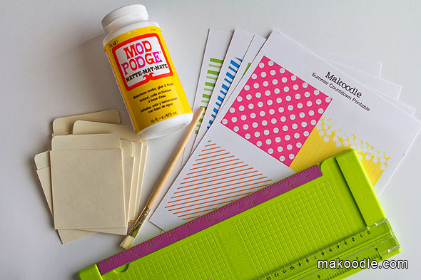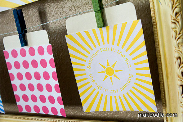 Cut the summer activity cards to the appropriate size. These are already sized to fit inside the envelope. There are 12 different activities. There are also some blank activity cards you can use to fill in your own summer activity ideas.