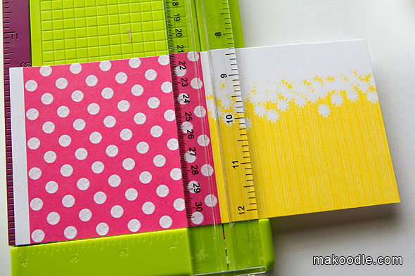 I need to interrupt this tutorial to give a shout out to the new Fiskars paper cutter I bought. It is fantastic! It has a wire line down the middle of it that allows you to see where you are cutting so you get a perfect line. It is seriously smart.