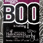 I must have looked through a hundred invitations and started a dozen different designs before getting Emily’s birthday party invite done. I wanted to include that it was both a Halloween party and a birthday party into the wording. We call her “Bugga Boo” so the prominent BOO text was perfect. Spider Web Halloween Birthday…