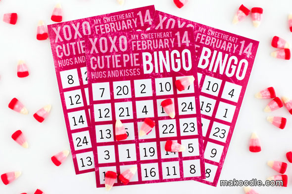I put together these Valentine’s Day bingo cards last year, but decided to create some new designs for this year. I used some of the Valentines bag toppers I shared last week as the inspiration for the designs.