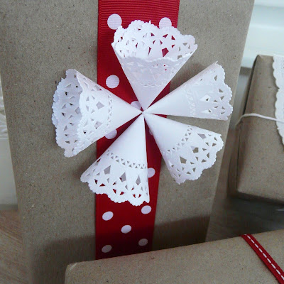 Well done girls! You guys always come up with lovely wrapping ideas. Where did you get the heart doilies?